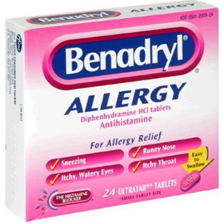 Benadryl è un antistaminico. Diphenhydramine blocca gli effetti dell'occorrenza naturale dell'istamina chimica nel corpo. Si usa per trattare starnutire, aumento delle secrezioni nasali, prurito, la lacrimazione oculare, orticaria, eruzione cutanea e altri sintomi dell'allergia e raffreddore.